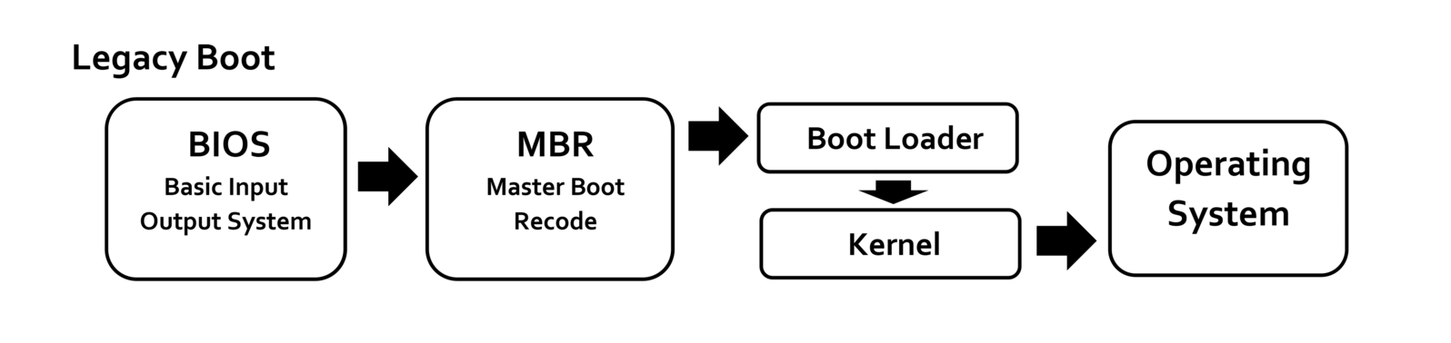 - BIOS:在x86平台,系统加电后,CPU会恢复到0xfffffff0开始执行,这一般是BIOS的内容,BIOS的主要作用是检测各种硬件并对其进行初始化(如填充各种寄存器),它分为Probe,Training和Enum三个阶段,注意初始时内存不可使用,BIOS是直接在ROM(如NorFlash)上执行的,当Training完成后才可使用,在完成开机自检后,它就能以中断向量的方式为后续的过程提供各种硬件信息(ACPI/Mem/Disk/SMBios等),在完成自检后它根据检测的硬件信息与配置加载bootloader的代码到0000:7C00处并跳转到该处执行,在之后bootloader及kernel依然会再使用BIOS提供的中断调用,由于这部分基本不会被定制,因此下面会跳过这部分。
